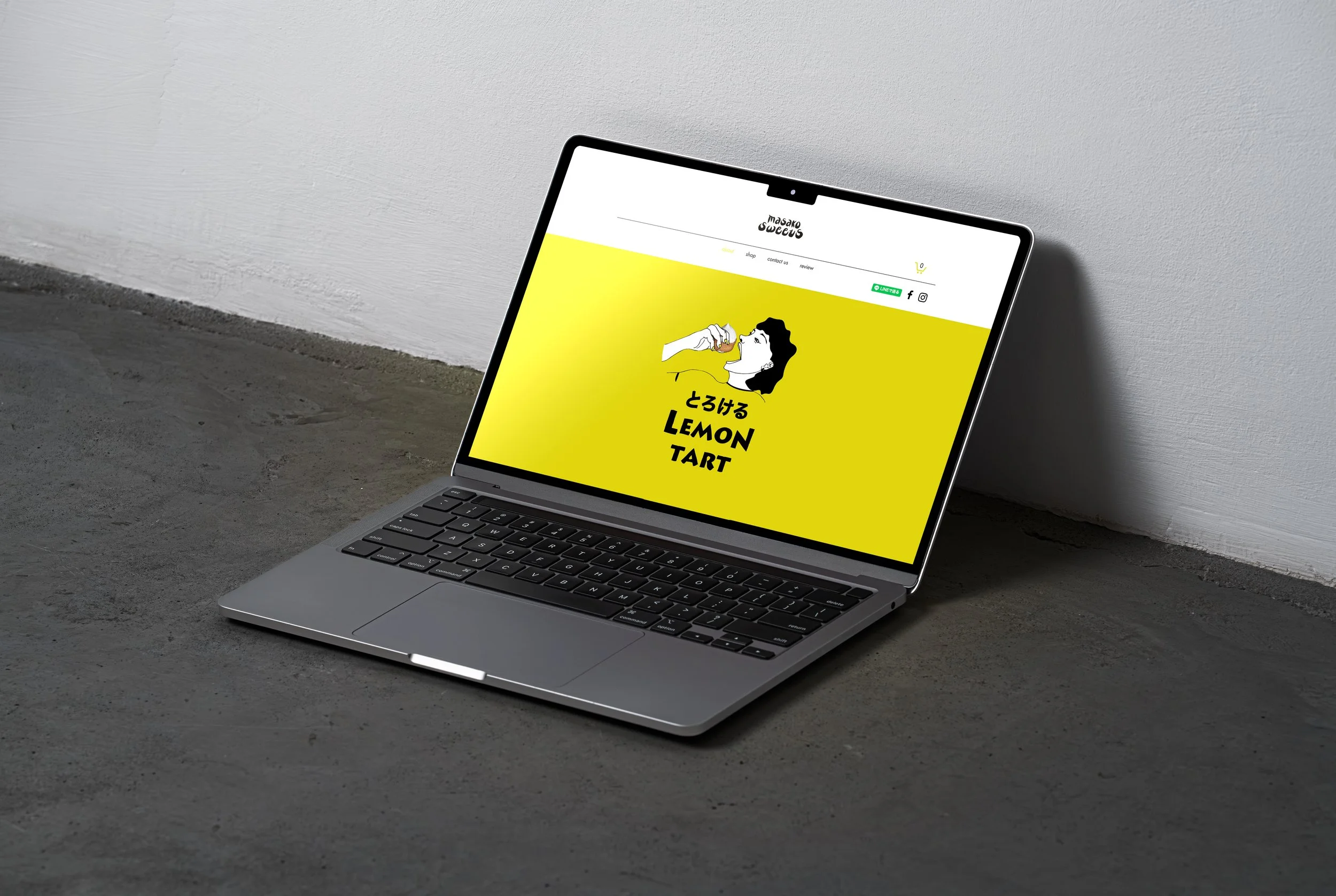 Branding including illustration, logo design, product design and website design for Lemon Tart of Masako Sweets, which is an order-made cake shop based in Tokyo, Japan. Every piece of cake is homemade and delivered personally by the owner. The illustration and branding designs reflect the freshness of lemon tart and quirky personality the owner is.