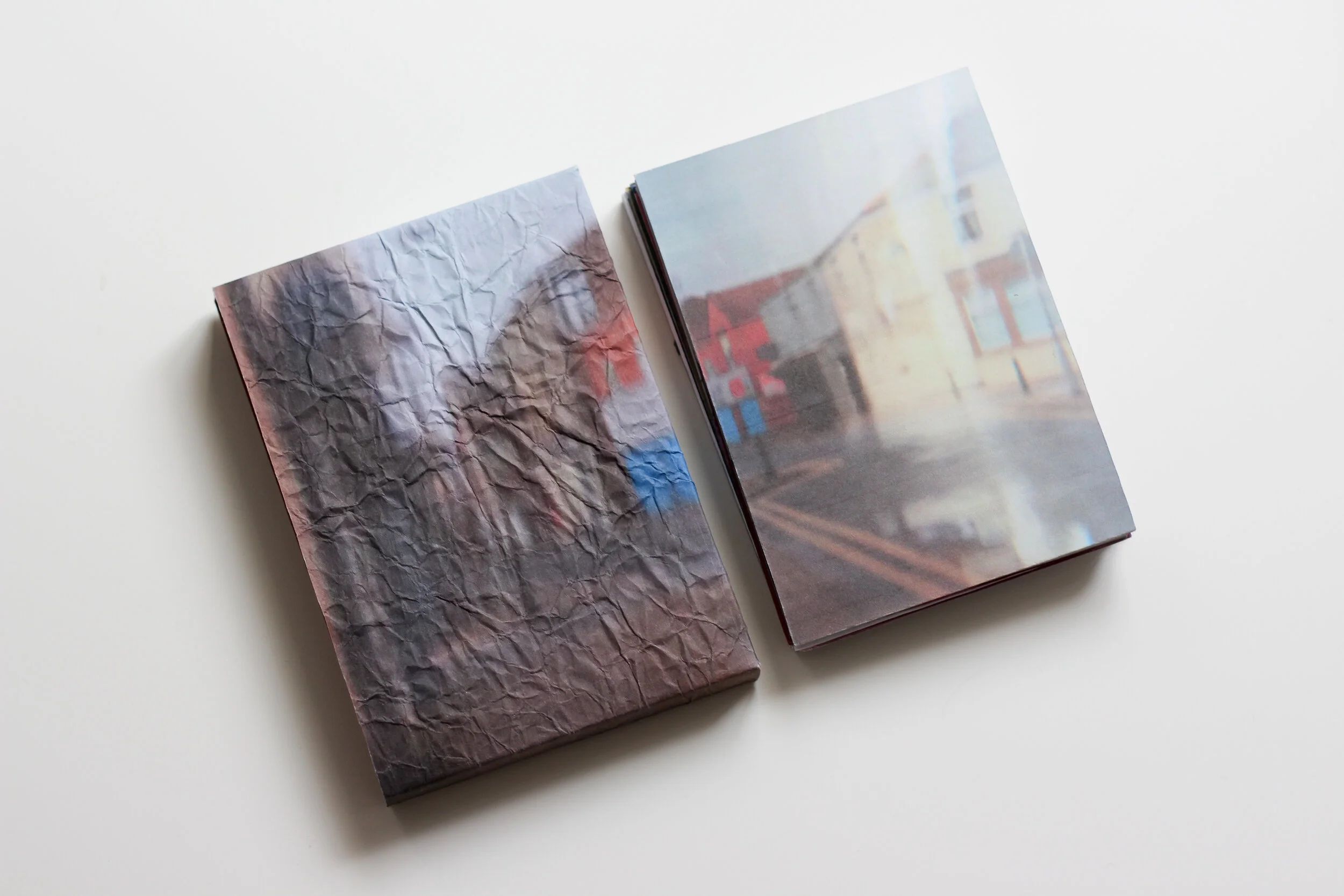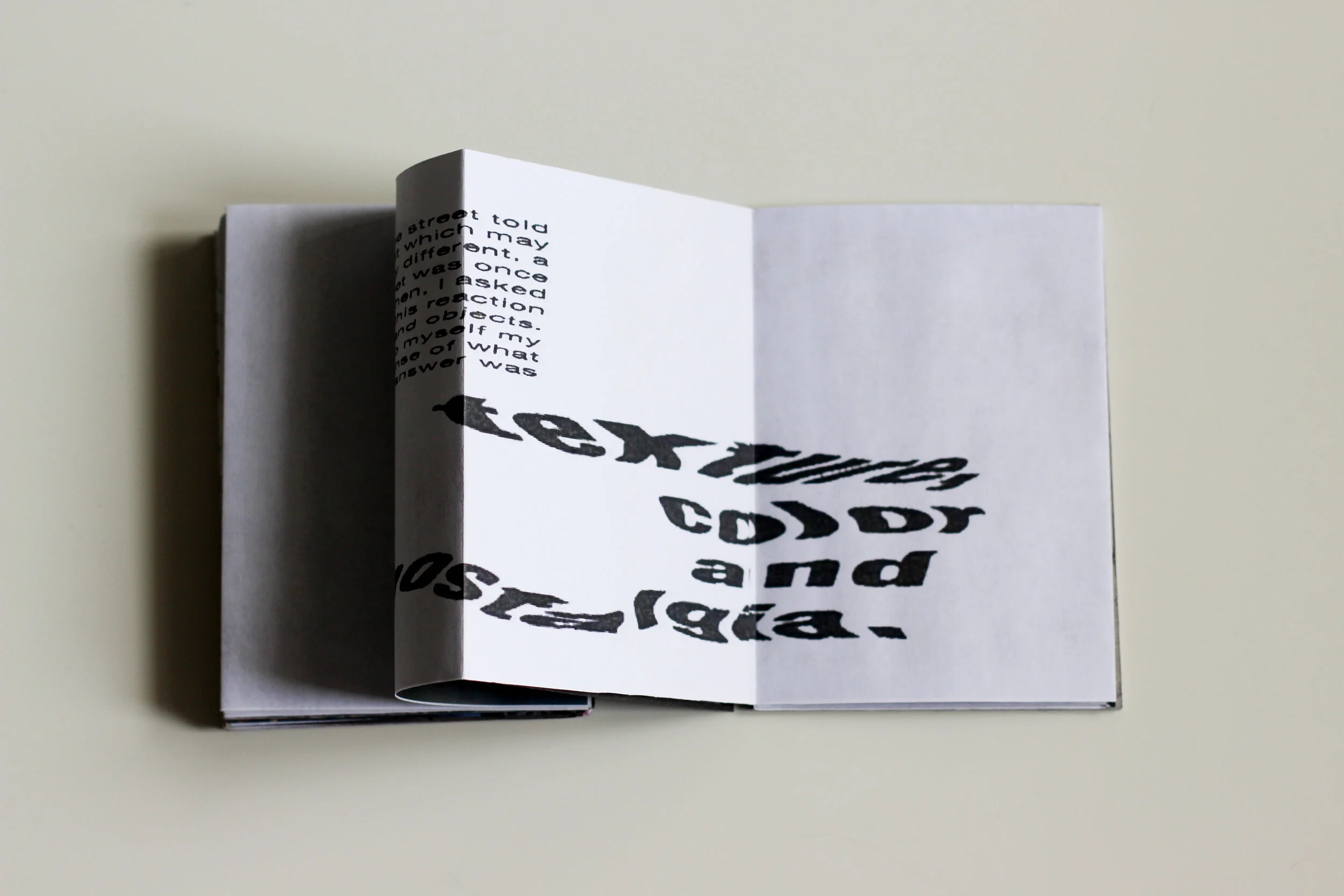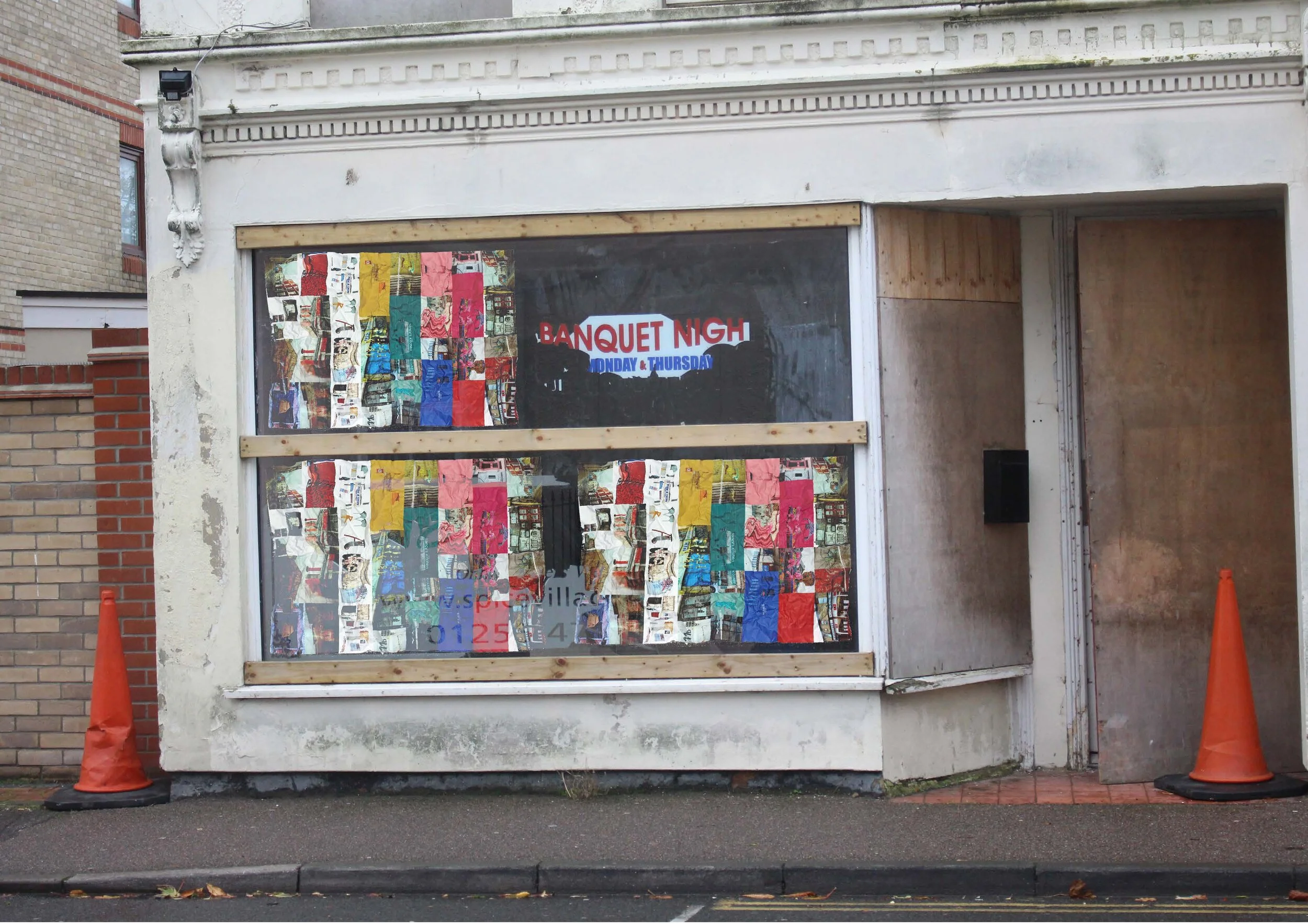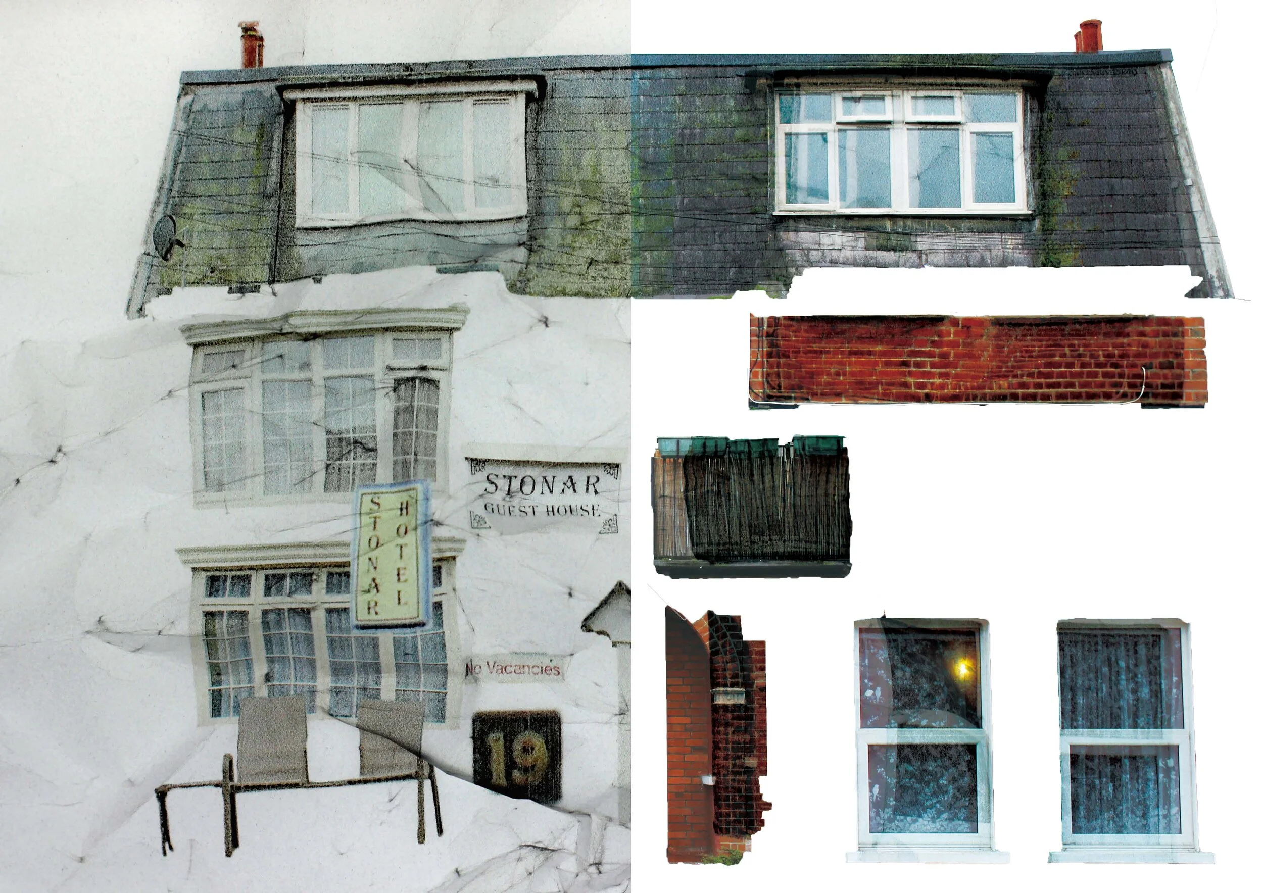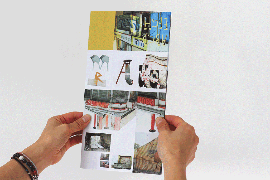 I explored the flat page format and decided to leave it as a poster, adding some perforation lines to let people fold this book themselves. This enriches the overall sensory experience of the project. As I mentioned, the format of a poster or flat page particularly appealed to me. Images of both Blackpool and Clacton were stitched together to form individual montages of both places and juxtaposed back onto shopfronts and shutters in the towns. This layered my interpretation and perception of both towns back onto the urban environment and represent a meeting point of distortion and reality.